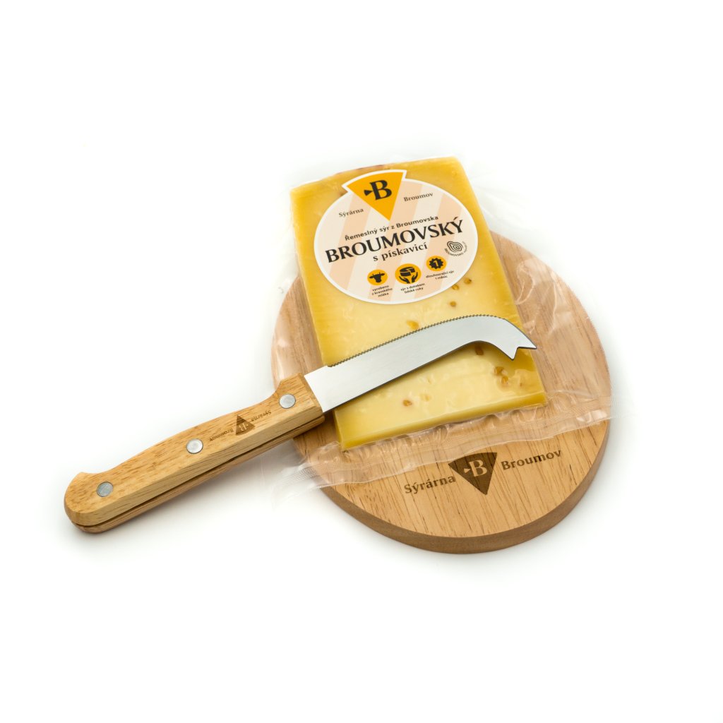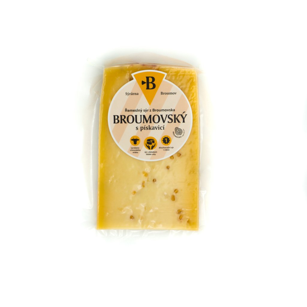 Broumovský sýr s pískavicí je náš oblíbený polotvrdý sýr. Pískavice mu dodává výraznou oříškovou chuť. Oproti ořechům je nealergenní.